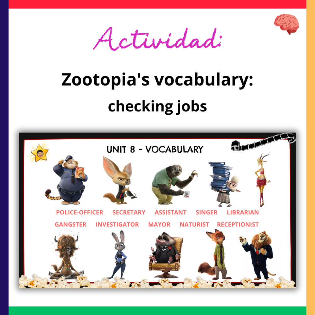 🧠 Zootopiat’s vocabulary: con esta presentación trabajaremos la expresión oral utilizando el léxico de las profesiones.